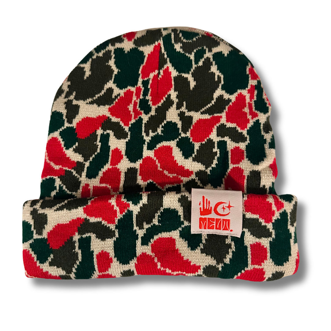 Camo Knit Beanie - Fireball Red